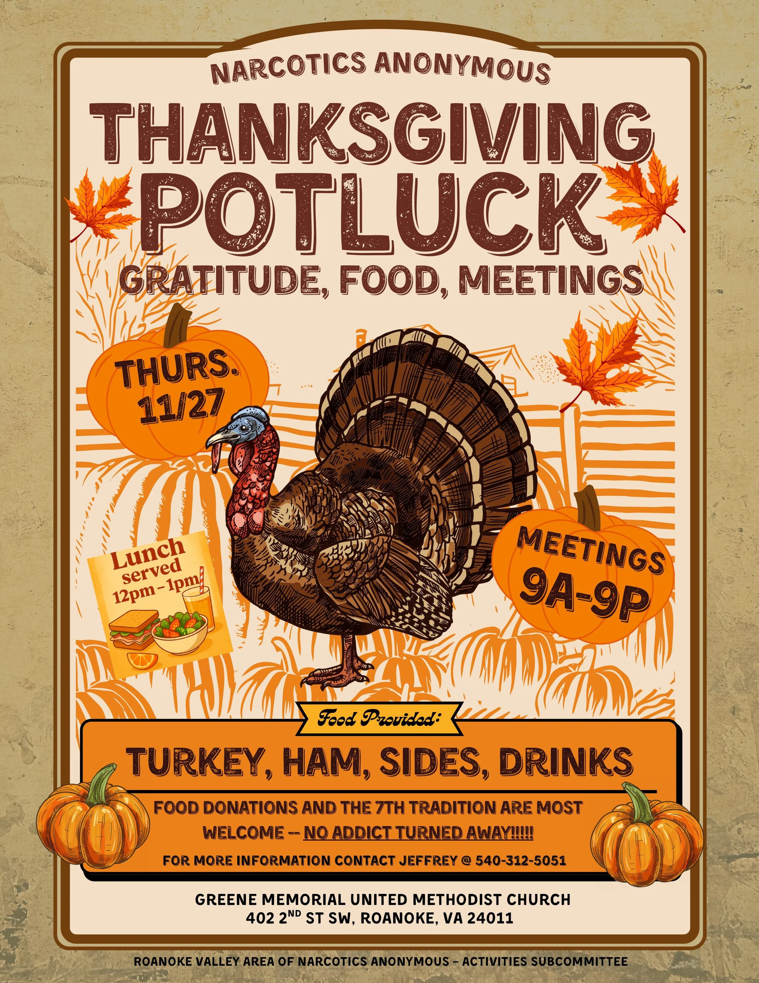 Please join us at Greene Memorial United Methodist Church for the Thanksgiving Marathon meeting on 11/27!